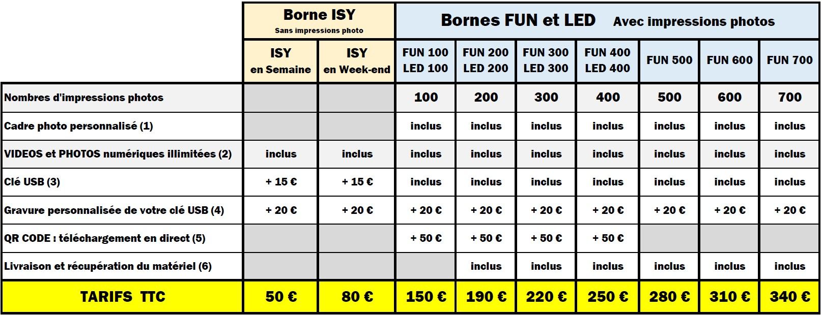 Tarif borne ISY "enfant" : 50€ (dans le cadre d'une location de borne LED ou FUN)